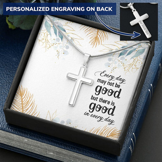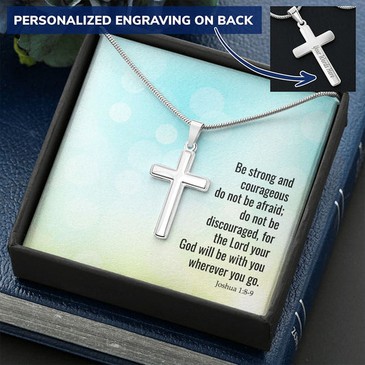"Strong & Courageous" | Cross Pendant Necklace (Personalize)